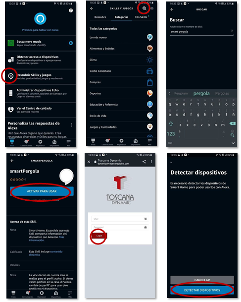 1. Para activar su pérgola con AMAZON ALEXA vaya a la aplicación de Alexa en su dispositivo