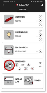 1.    Seleccione la opción sensores de la pantalla principal